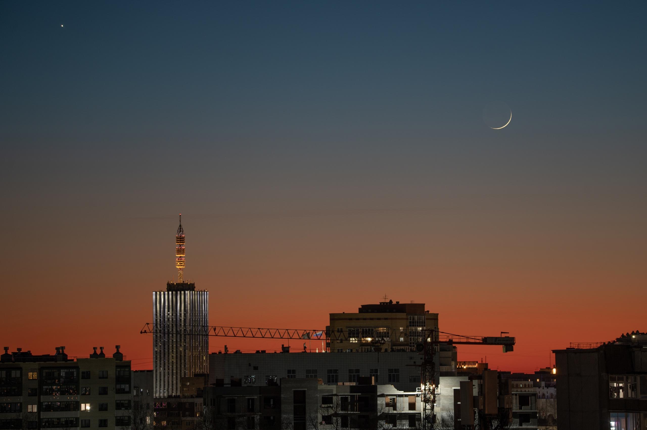 Вечером накануне небо над городом окрасилось в яркие цвета, создавая волшебную атмосферу.